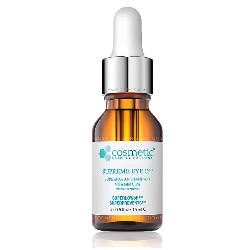 - Cosmetic Skin Solutions Supreme Eye C5 Eye Gel uses a 5% concentrated Vitamin C, Hyaluronic acid and Asiatic acid to energize tired-looking eyes without the heaviness of an eye cream