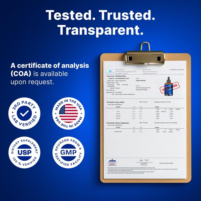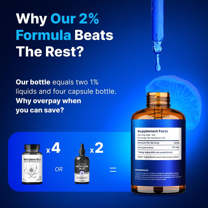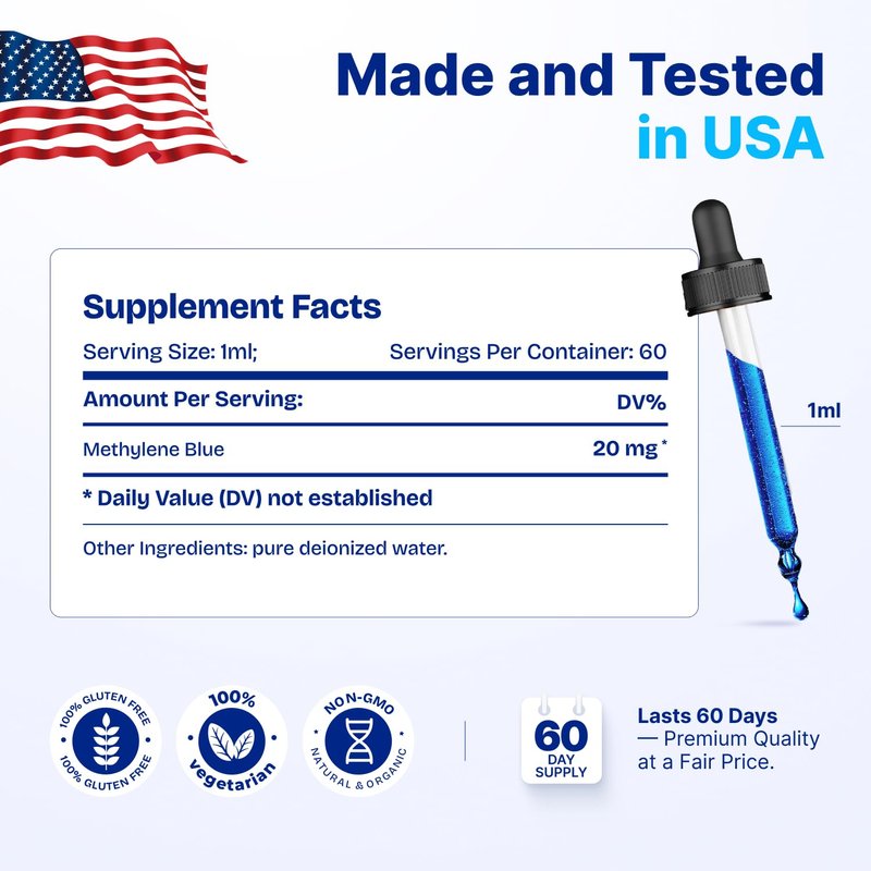- PURE PHARMACEUTICAL GRADE QUALITY – Each drop contains methylene blue pharmaceutical grade and methylene blue USP grade purity—crafted for performance, precision, and absolute trust in every dose.