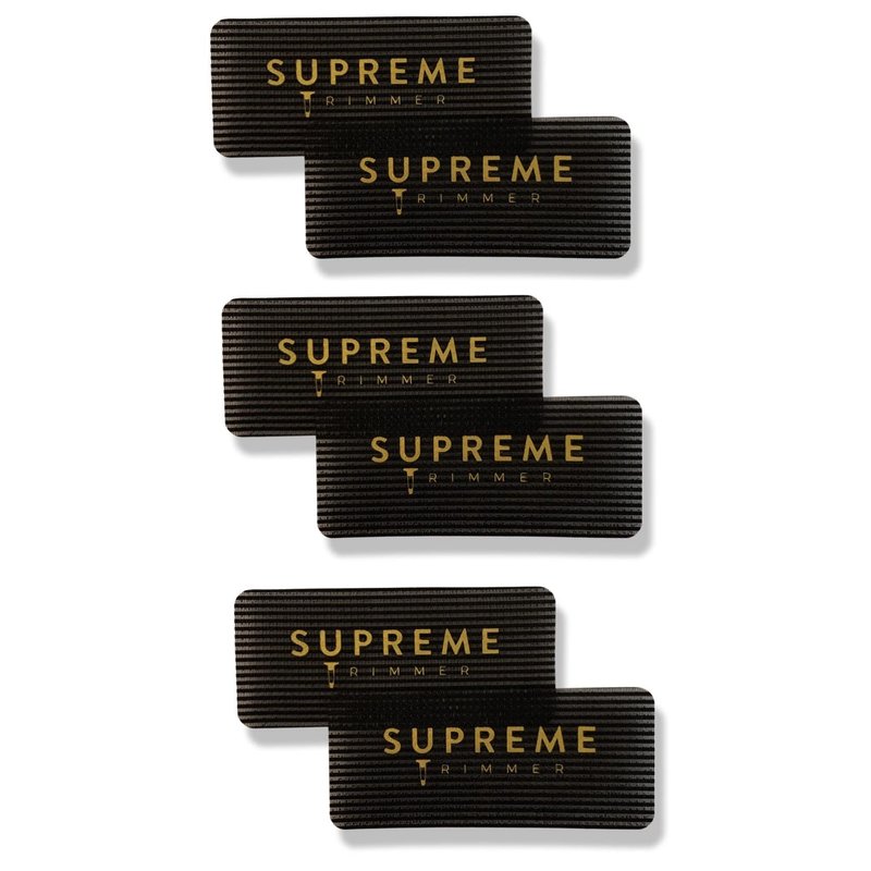 Supreme Trimmer hair holders are a helpful accessory for barbers, stylists and beauty gurus! These palm size hair grips hold the parted hair (dry or damp) in place for detailed styling without causing damage to the hair. Great tool to use when fading, cutting, adding extensions and styling hair. Also great to use when applying makeup, face masks or simply washing your face. Easy and convenient to use with no clipping needed, safe to use for all hair types. Our Barber Grippers are made with velcro and Nylon material, making it a lightweight, durable, reusable and safe product.