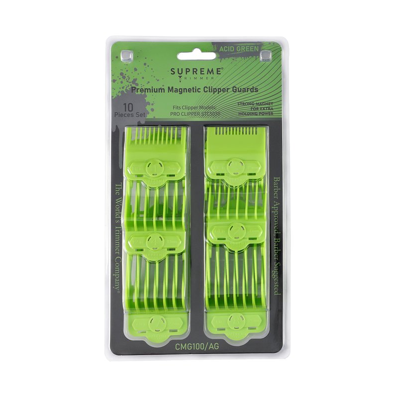 Supreme Trimmer Magnetic Guide Combs for Clippers | CMG100 Hair Clipper Guards, 10 Cutting Lengths | Acid Green