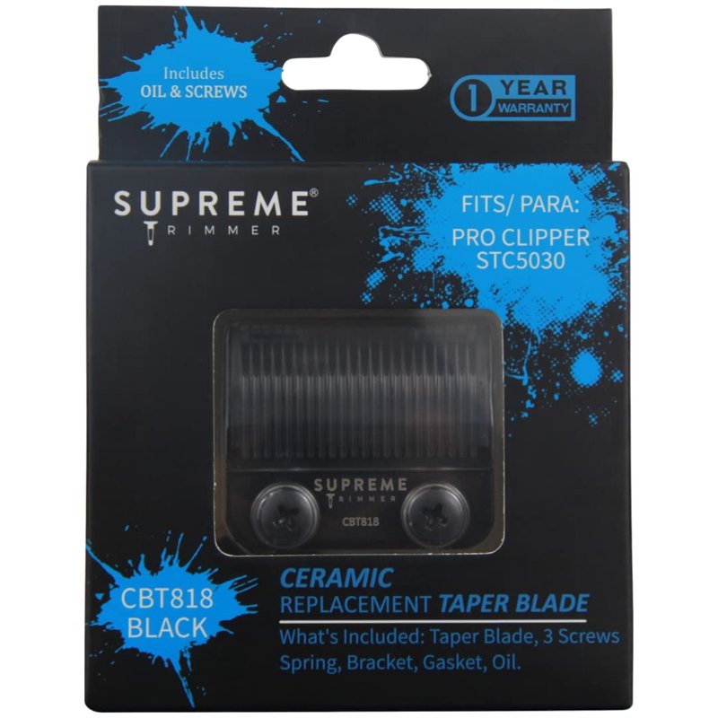 Supreme Trimmer Replacement Taper Blade CBT818 | Ceramic Blade for Hair Clippers | Black