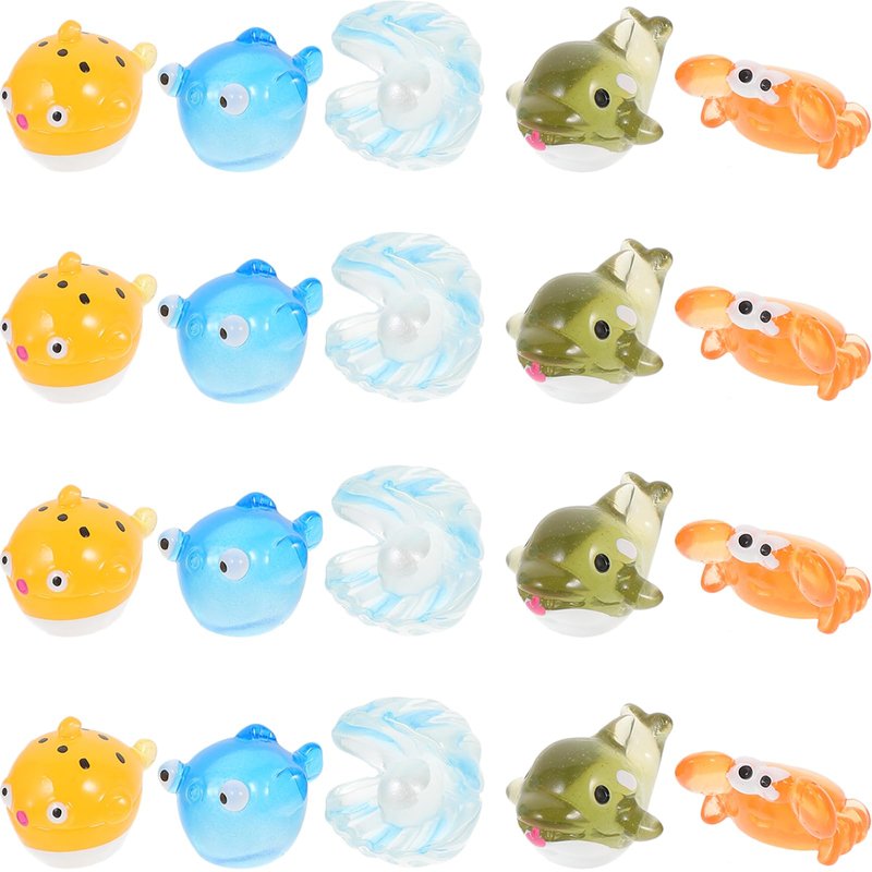 SUPVOX 25pcs Ocean Mini Figurines, Resin Miniature Fish Figurine Tiny Resin Trinkets Marine Aquarium Ornaments Dollhouse Decorations for Fish Tank Garden Fairy Accessory