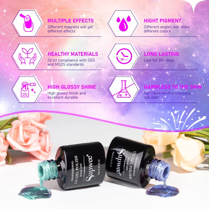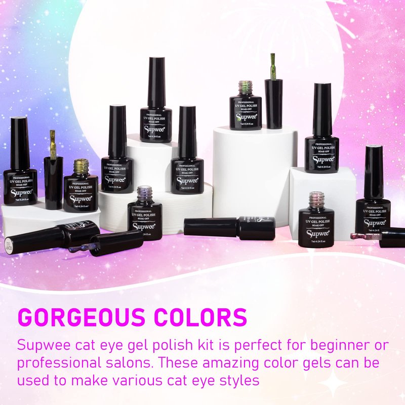- ✨【Healthy and Friendly】SUPWEE Cat Eye Gel Polish is made of natural resin which non toxic, low smell, and has no harm to the skin, it's the perfect gift for your mother, sister, or girlfriend