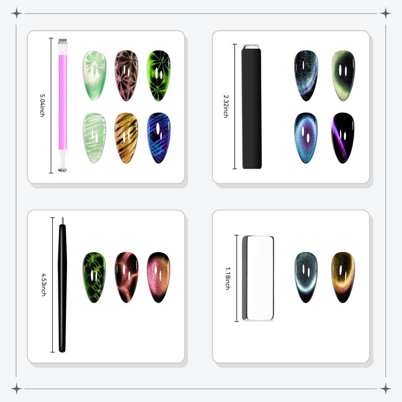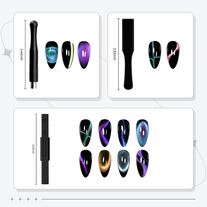 - Super Strong Magnetism: The Cat Eye Nail Magnetic Collection features a super strong magnetism, Whether you're a professional nail artist or a DIY enthusiast, achieve intense and mesmerizing cat eye effects in just a few seconds, adding a touch of elegance to your nails