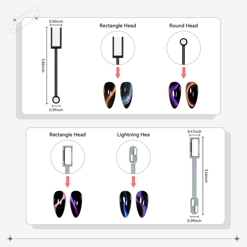 - Multiple Magnet Combinations: 9 kinds of different Nail Magnet, Our nail magnets for nail art come in various designs, allowing you to create a wide range of captivating cat eye effects on your nails. Experiment with different magnet placements for unique and eye-catching patterns