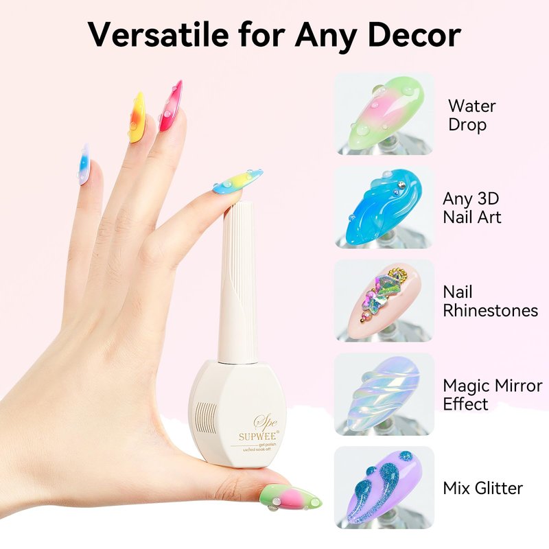 - Multi-Purpose 3D Nail Art Gel: This 3D Nail Art Gel allows for a high level of creativity and customization in nail designs and is available for various nail patterns and designs. Easy to mix with different colors and apply with chrome powder, sequins, and nail polish