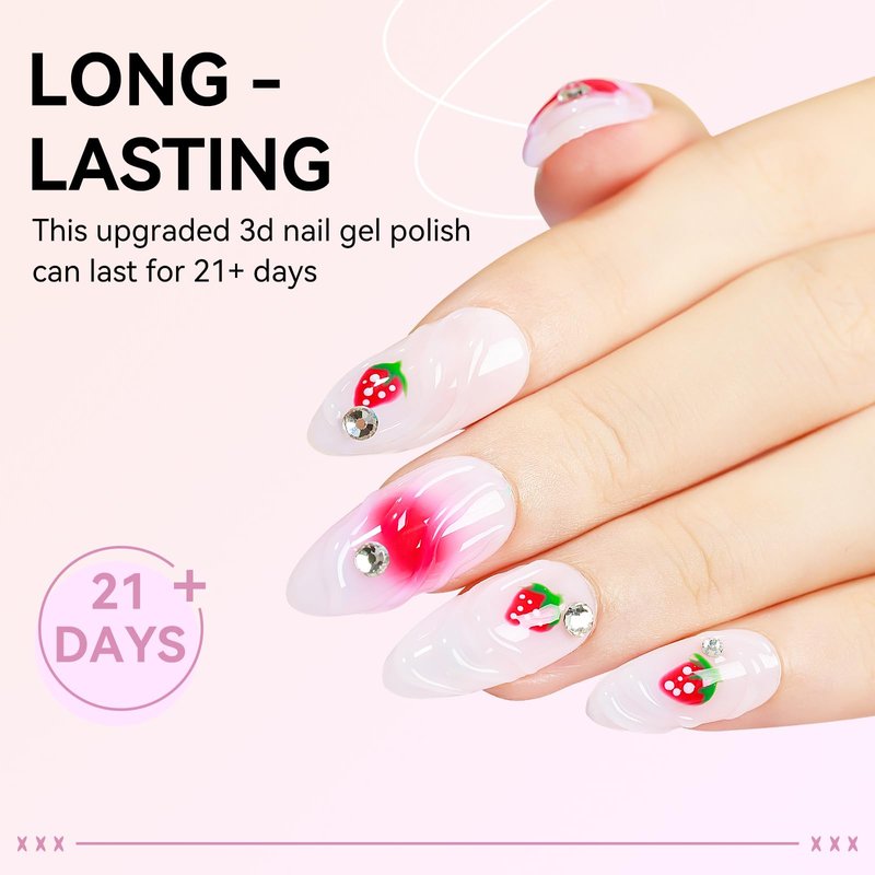 - Clear 3D Drawing Gel: High Capacity 15ml(0.5fl oz) Clear 3D Nail Gel, this 3d Nail Art Gel is suitable for various techniques, including sculpting, nail rhinestones, and creating mesmerizing 3D designs