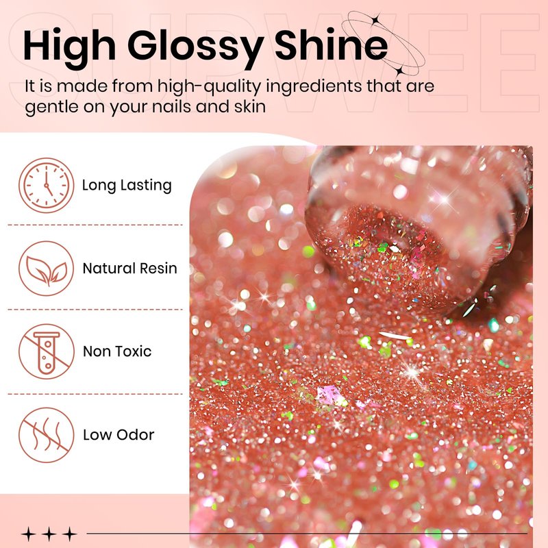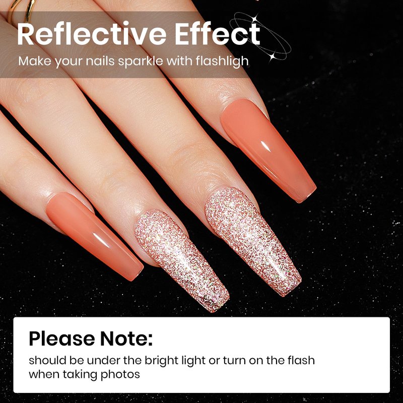- 【High Pigment Sparkle Gel Polish】 High Capacity 15ml(0.5fl oz) Reflective Gel Polish, Our Sparkle Gel Polish combines the beauty of glass fragments to create an extraordinary shimmering effect on your nails. Get ready to shine and stand out in any light