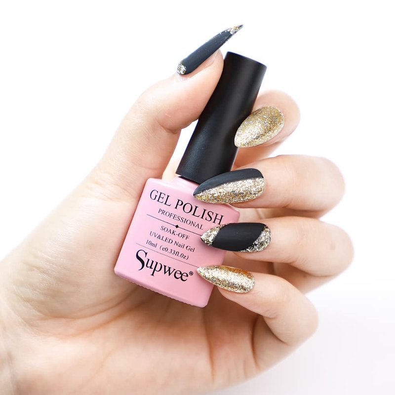 SUPWEE Gold Glitter Gel Nail Polish Sparkle Color Nail Polish Gel Diamond Gold Gel Polish Soak Off UV Gel Manicure Nail Salon Varnish Nail Art DIY At Home 10ML(0.33 Fl Oz)