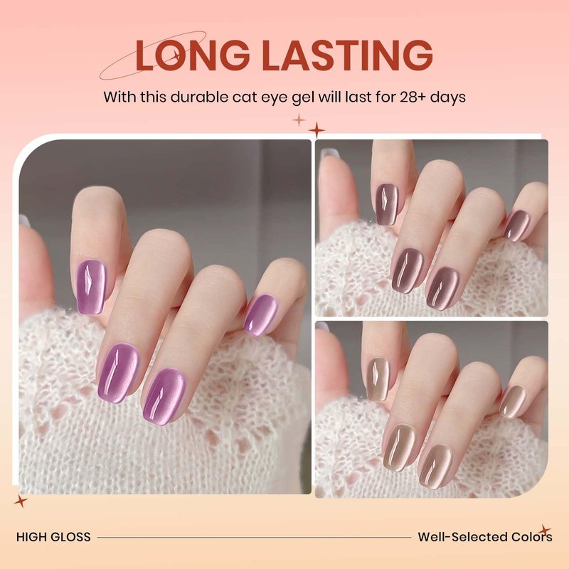 - 👍Ideal Gift and Long Lasting: This Cat Eye Magnetic Gel is easy to apply and will last for 21+days with operation, will show different effects with different angles, and it's the popular gift for birthdays, Christmas, Mother's Day.