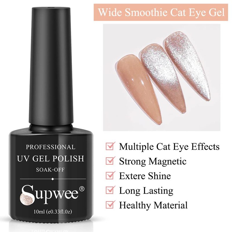 SUPWEE Smoothie Wide Cat Eye Gel Nail Polish Magnetic Gel Polish 10ML Cat Eye Nail Polish Soak Off UV/LED Gel Cat Eye Polish with Magnetic Stick