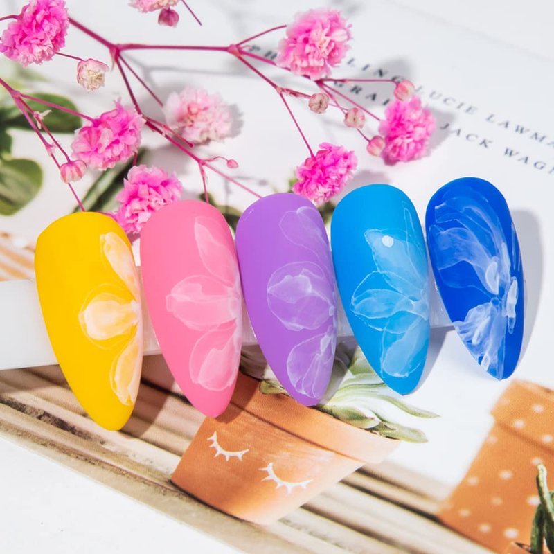 - ★Warm Tips: Please be CAREFUL when using it to avoid turning over the bottle because it is liquid. . If you are a beginner, we suggest you follow the instruction or learn more skills online before using the blooming gel polish