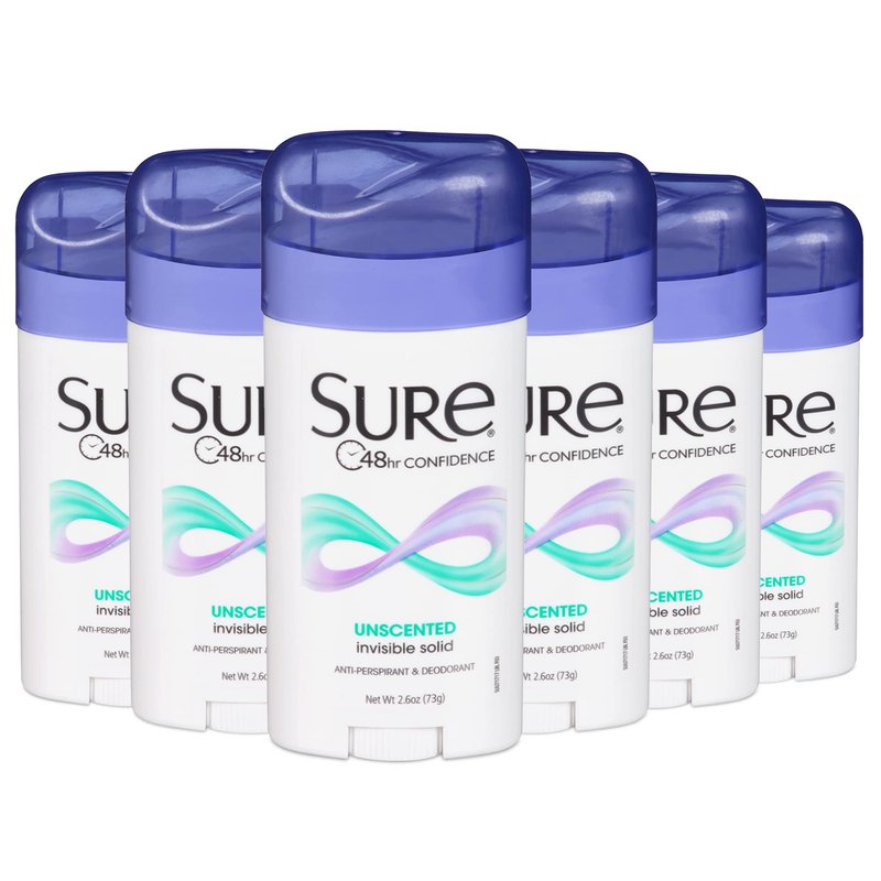 SURE, Antiperspirant Deodorant, Solid, Unscented, 2.6 Ounce (Pack of 6)