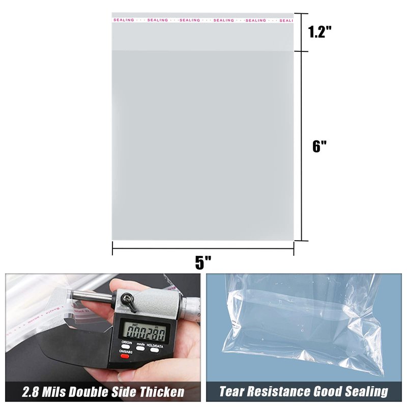 - [SIZE & QUANTITY]: There are 100 pieces cookie bags for gift giving in package. Size of these self sealing cellophane bags is 5x6 inch+1.2inch(13cm x 15cm+3cm),not 4x6. And all of these clear bags are 1.4x2 mil thick. Big and thick enough to allow you to wrap your treat cookies.