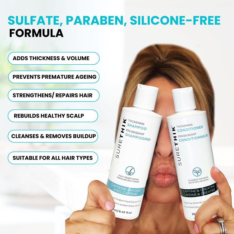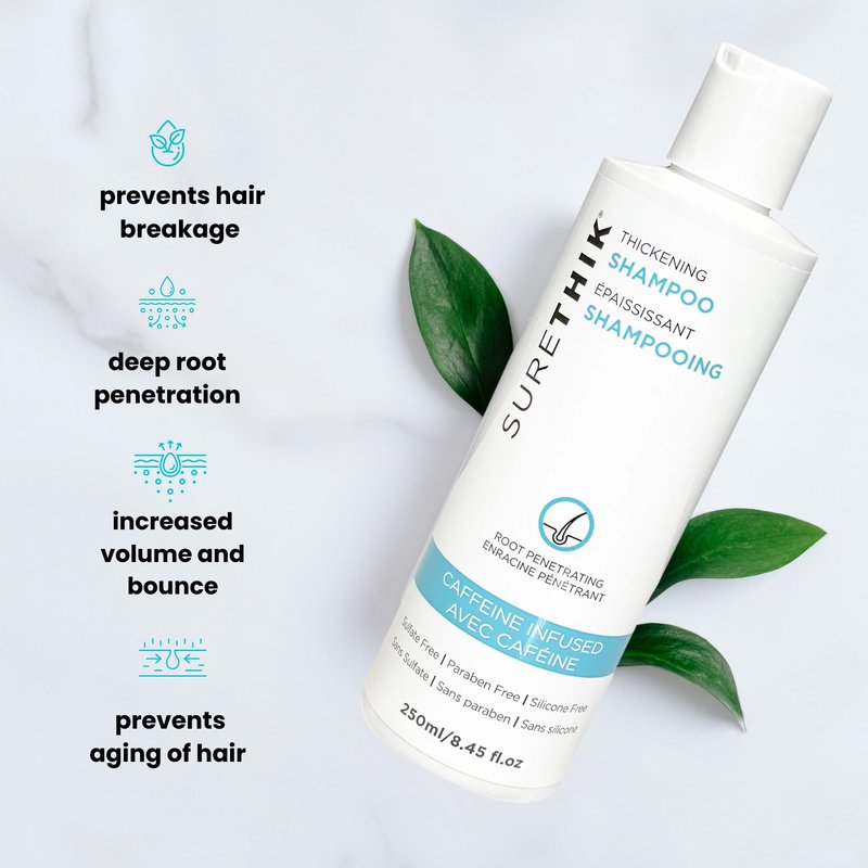SURETHIK Hair Thickening Shampoo - With Caffeine & Nourishing Oils - Sulfate, Paraben & Silicone Free (250ml)
