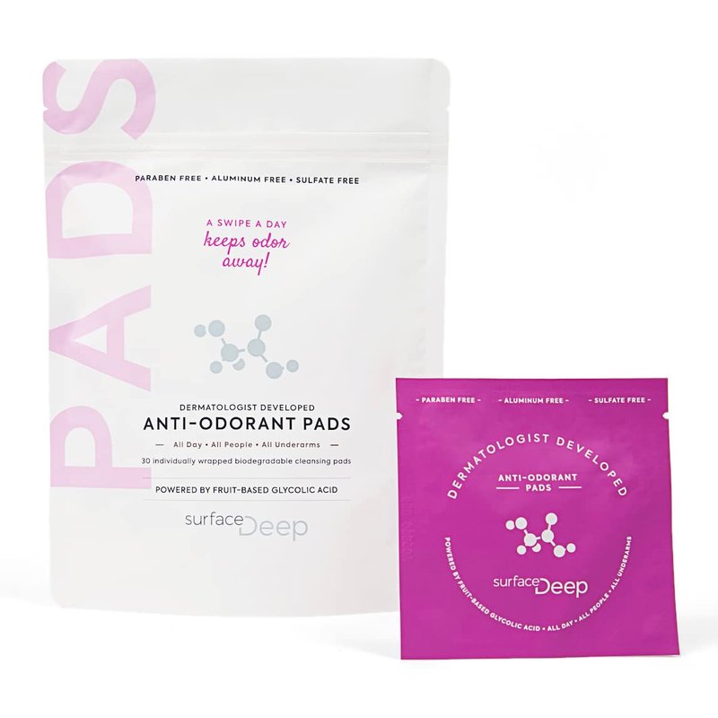 - CLEAN AND NATURAL/WHOLE BODY: With a commitment to clean beauty, Surface Deep's anti-odorant pads are crafted from natural ingredients, avoiding harsh chemicals and synthetic fragrances commonly found in conventional deodorants. Aluminum Free, Paraben Free, Baking Soda Free, Unscented, and Biodegradable pads. Use these natural wipes on the go from the gym or longs days for clean fresh, residue free odor control. Leaves no residue on you or your clothing.