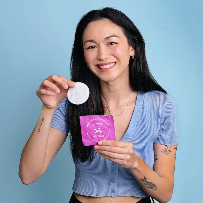 Introducing Surface Deep Deodorant Wipes – a revolutionary solution in the world of odor control. These innovative pads offer a game-changing approach to managing body odor, thanks to a dermatologist-developed formula powered by glycolic acid. This unique formulation is great for odor control and also has long-lasting freshness for both women and men. At Surface Deep, we understand the importance of personal hygiene. That's why our natural deodorant wipes are designed to be an innovative and effective solution for managing body odor while prioritizing your skin. We believe in providing you with a convenient, on-the-go solution for staying fresh and confident. Our commitment to clean beauty sets us apart. Surface Deep's anti-odorant pads are meticulously crafted from natural ingredients, meticulously selected to avoid the use of harsh chemicals and synthetic fragrances commonly found in conventional deodorants. We believe that what you put on your skin should be as clean and natural as possible. But our dedication doesn't stop there. Surface Deep is a brand that deeply respects animals and the environment. We proudly offer vegan and cruelty-free products, ensuring that no animal testing or animal-derived ingredients are ever used in our formulations. Your choice to support Surface Deep is a choice to support a more compassionate world. We take eco-consciousness to the next level by offering biodegradable packaging. This makes it incredibly easy for our customers to make a sustainable choice while enjoying all the benefits of our innovative deodorant pads. With Surface Deep Deodorant Wipes, you're not just taking care of yourself; you're taking care of the planet too. Join us in making a positive impact today.