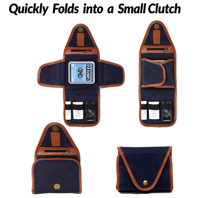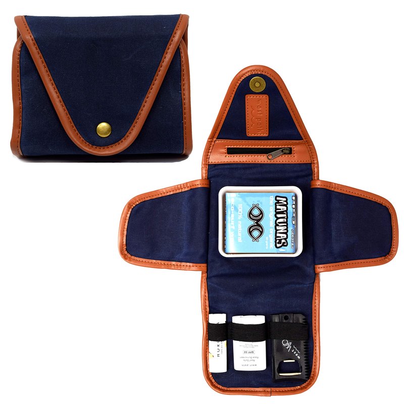 It's the simple things in life that often make the biggest difference. Like when you're about to head out for a day on the ocean, it's nice to know you have all your essentials organized in one neat Surf Travel Kit. No hassle, no mess, and no scrambling around in the dark for 20 minutes to find your wax or sunscreen...Instead, everything is neatly tucked away in its own space, neatly organized in a handy and stylish clutch that fits easily in the glovebox of your car. (dimensions: 7" long x 4.2" tall x 1.8" wide) Leave the digging for wax and sunscreen to the newbies, get more time in the ocean, and more happy vibes with our Surfer Gift Set. Currently offered with a free organic coin pouch while supplies last :).