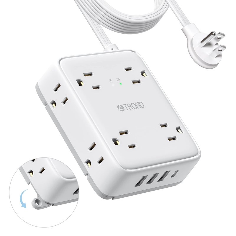 TROND - Ultra-thin USB C Flat Plug Power Bar, 15 Foot Long Indoor Extension Cable, Surge Protective Power Strip, 8 Outlet Extenders, 4 USB Ports, Wall Mount, Home Office Supplies, Travel Essentials for Bedroom