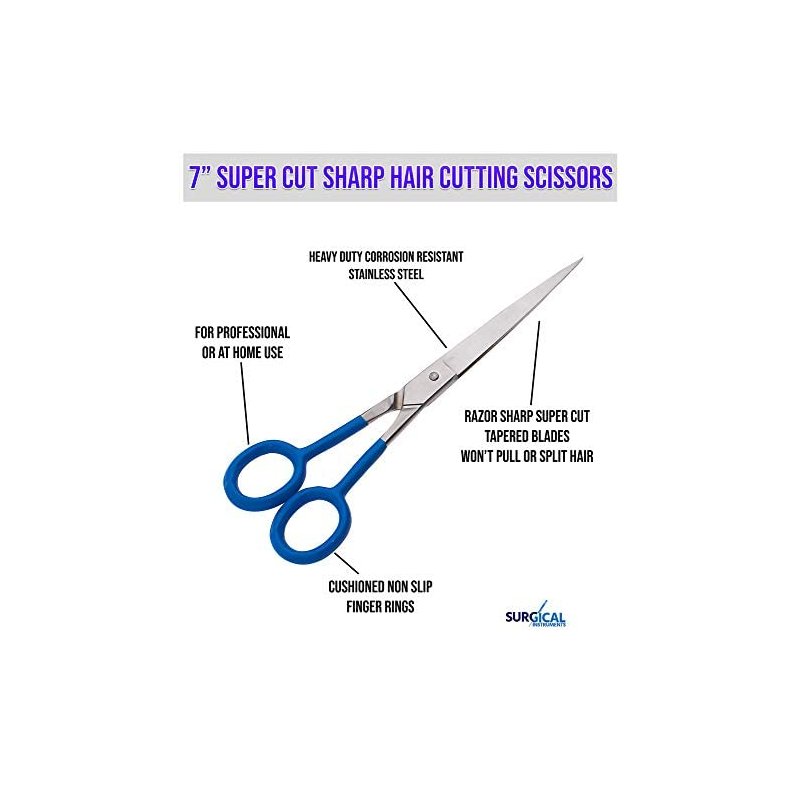 SURGICAL ONLINE 7" Ultra Sharp Professional Straight Barber Scissors, Stainless Steel Hair Cutting Shears For Men & Women Easy Grip Handles