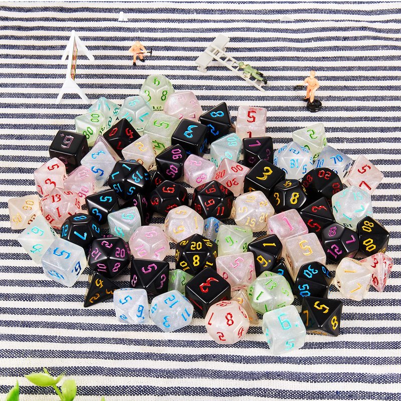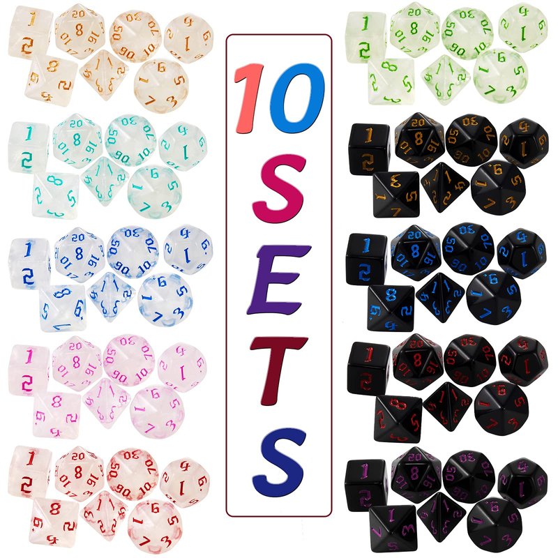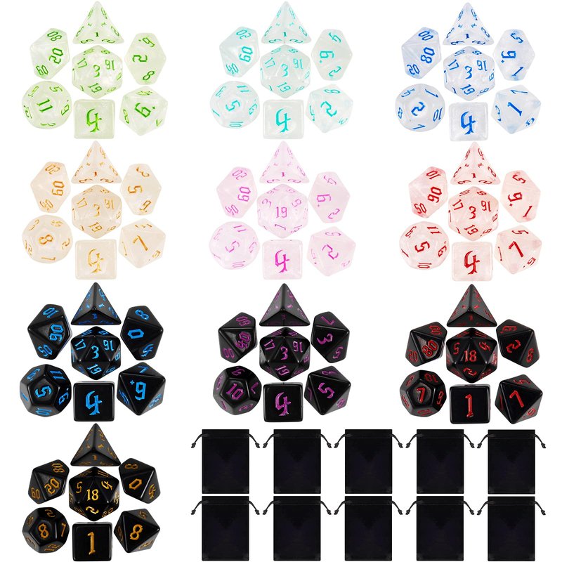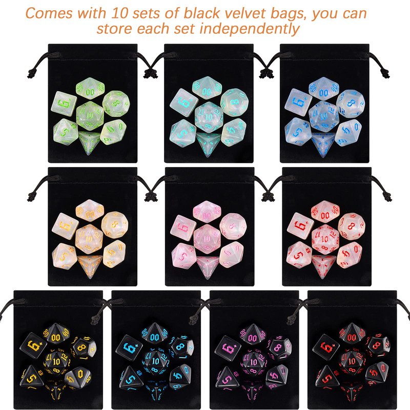 - You will receive a 10 x 7 dice set (70pcs), 10 drawstring bag.