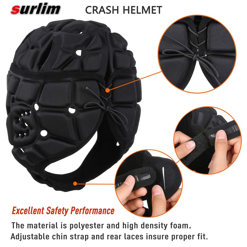 surlim Soft Helmet Flag Football Rugby Helmet Scrum Cap Soft Shell Helmet Soccer Headgear for Youth Adults (Black, Medium)