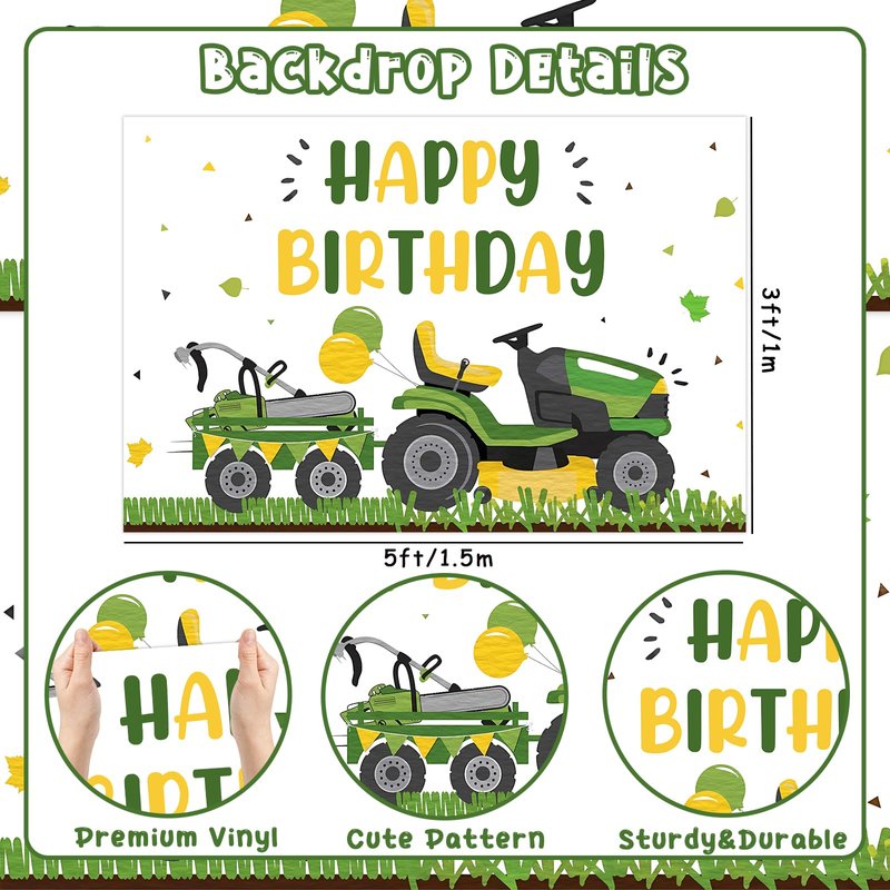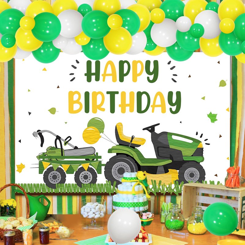 - Unique Design: Lawnmower birthday backdrop is designed as cute lawnmower and grass patterns, matching green, yellow and white balloon garland arch kit, which will add a strong atmosphere for lawnmower themed birthday party.
