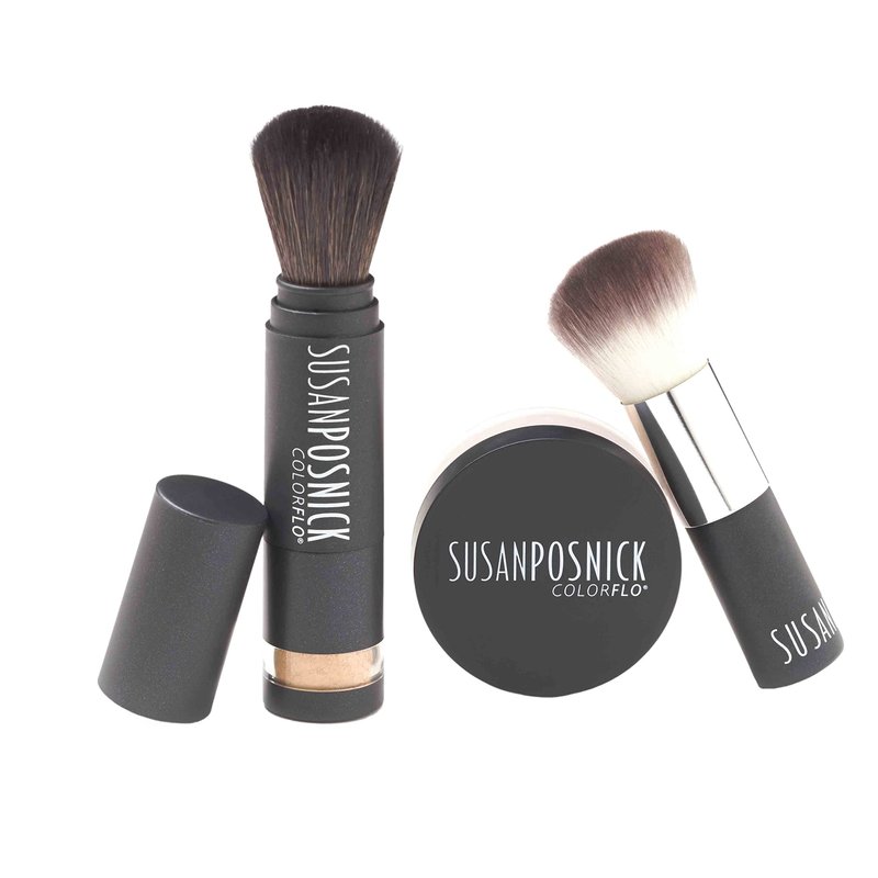 We at SPC believe in Minimal Products, with Maximum Values, For Sustainable Beauty. All of our products are developed with premium healthy ingredients, intended to be multipurpose, and portable. Our award-winning COLORFLO natural makeup created by celebrity makeup artist Susan Posnick provides the benefits of six amazing products in one. It is made of the finest-milled pharmaceutical grade mineral pigments and created by Susan to be your perfect concealer, highlight / contour, foundation, setting powder, and needed sun protection for every day. It's available in our award-winning self-dispensing refillable brush you can take anywhere, or, now in our compact sifter container for coverage you can control at home! Quick and easy application of our Loose COLORFLO with our vegan blender brush softens fine lines without settling into wrinkles, keeping your skin creaseless and appearing airbrushed. This highest quality all natural makeup nourishes the skin with Vitamin A and Vitamin E and immediately blocks out harmful UVA & UVB rays, blue light from screens, and environmental pollutants. It will not clog pores or irritate sensitive skin conditions – in fact, it is so pure and gentle it can be applied immediately after all surface skin treatments (like facials and gentle peels) to cover redness, and when spotted on blemishes it can heal them in half the time. Makeup Meets Medspa! This is why COLORFLO is carried by the finest retailers, salons, beauty bars, apothocaries, and destination spas all over the world. Whether you use our COLORFLO brush on the go, or COLORFLO Loose at home - you can enjoy Clean Confident Beauty at home, work, gym, that big event, or all four in a day! For healthy, flawess looking AND feeling skin at any age, COLORFLO is your go-to, all-natural makeup and sun protection solution.