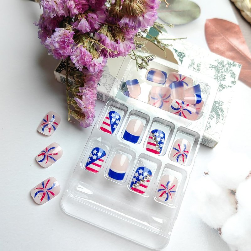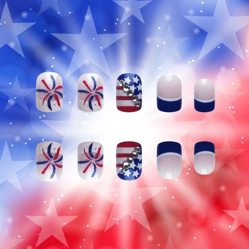 - Nice Gifts: Independence day press on nails can bless your beauty in dating, prom, Christmas party, Valentine's day,saint patrick's day,Easter,dances, etc. Short square fake nails are the perfect gift for women and girls. You can give it to your wife, girlfriend,sister or friend in the Valentine's Day, St Patrick's Day,Easter,Independence Day ,Halloween,Christmas day.