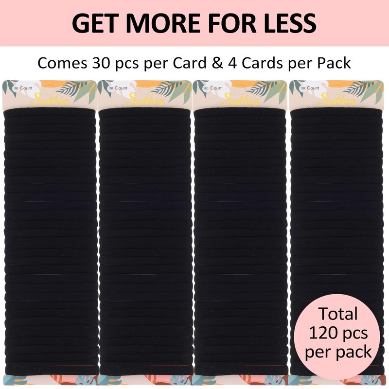 SUTHIA Black Hair Ties for Thick Hair 120 Pack, Nylon Hair Ties No Damage Hair Ties Bulk Hair Ties Thick Hair Elastic Hair Ties Ouchless Hair Ties for Women Cloth Ponytail Holders Fabric Hair Bands