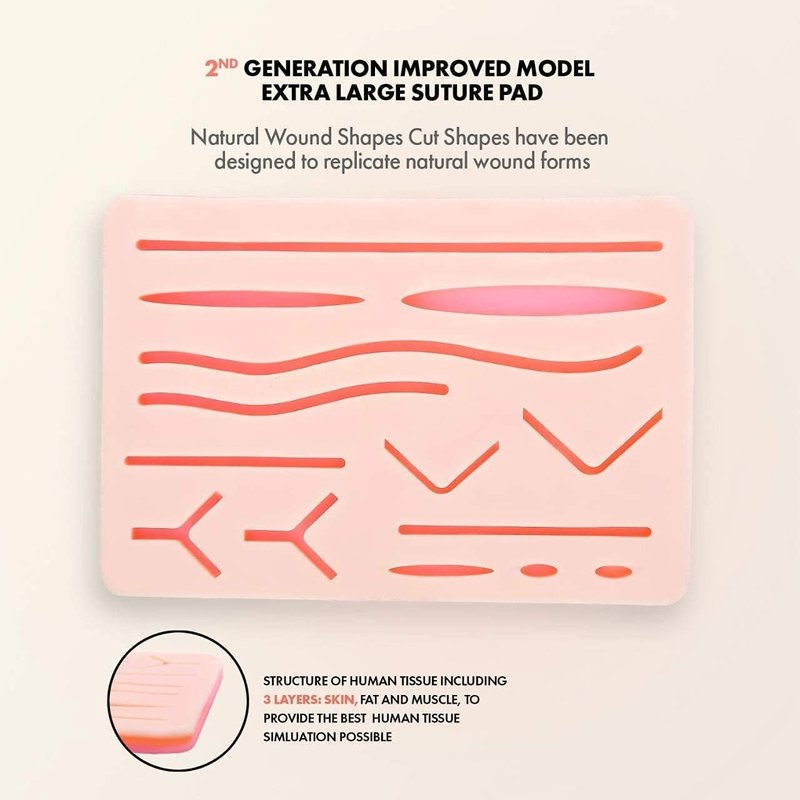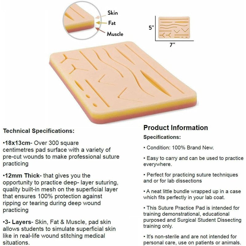 - IDEAL FOR TEACHING & TRAINING: our pad is designed keeping all the points in front that are important for students in suture training and wound stitching professional and advance learning. It is truly ideal for teaching and students training.