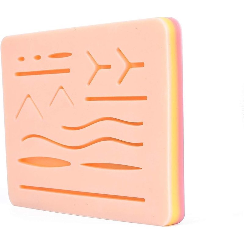 - BEST QUALITY MATERIAL: our suture pad is made with the best quality composite material and passed through multiples lab tests to ensure that its texture is close to real skin with a standard approved thickness that make it ideal for deep wound closing practice.
