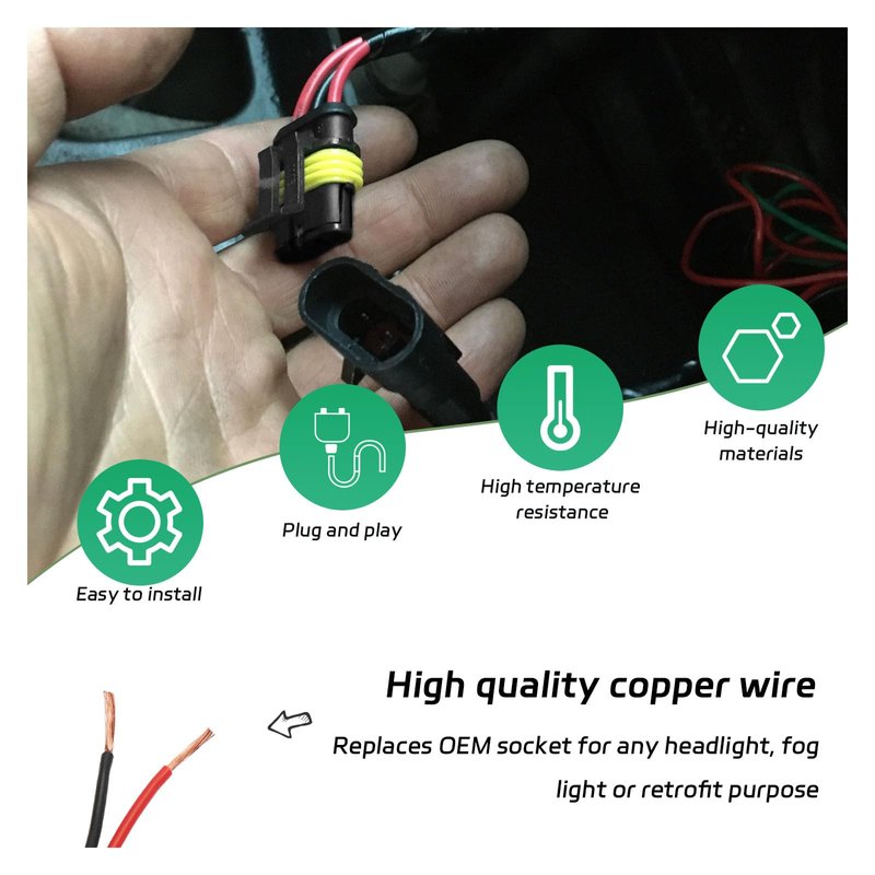 - 【Practical Function】: The function of this product is to facilitate your headlight modification. Taking power from the original wiring harness but not destroying the original wiring harness, so that the headlights work stably, providing safety for your vehicle's nighttime lighting. You can use it for almost any headlight fog light or modification application.