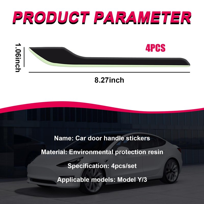Suvnie 4 PCS Car Door Handle Sticker, Anti-Scratch Door Handle Reflective Decal Wrap Kit, Waterproof Side Door Handle Decorative Protector Compatible with Model 3 Model Y (Luminous Black)