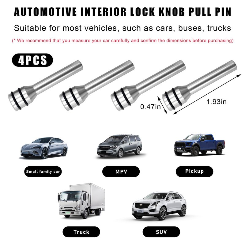 - 【Wide Application】: The door lock knob is a universal decorative accessory. It is suitable for various types of vehicles, such as car, SUV and truck. The package includes 4 car door lock knobs, measuring 1.93 × 0.47 inches. There are enough car door lock knobs for you.