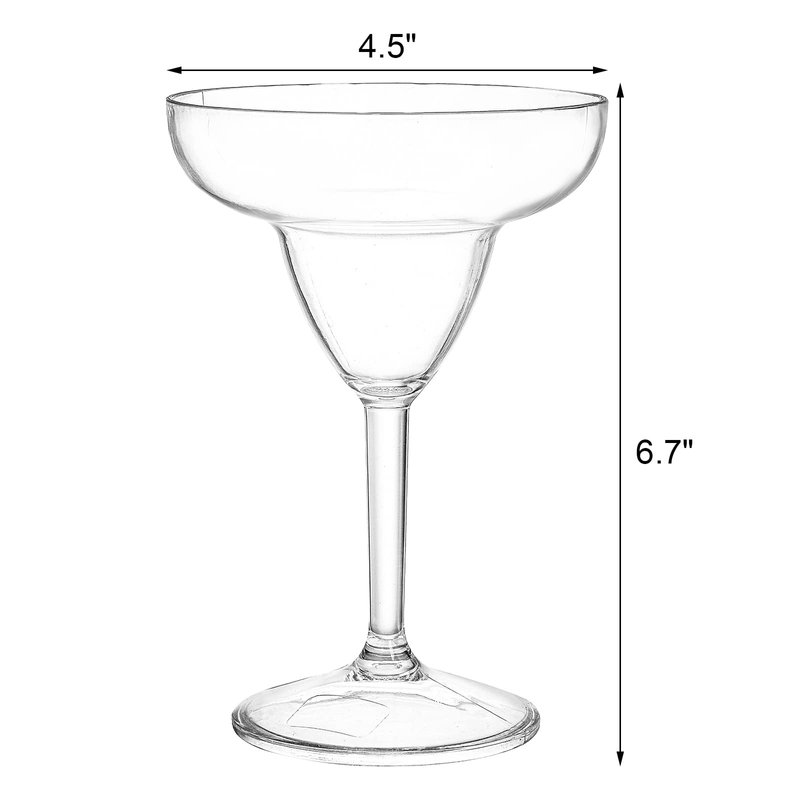 - Shatterproof - Each Margarita Glass is made from thick shatterproof Polycarbonate Plastic that won't crack, chip or break due to an accidental spill or fall. Elegant, extremely durable. Heavy-duty plastic offers the look and feel of traditional glassware without the fear of broken glass.