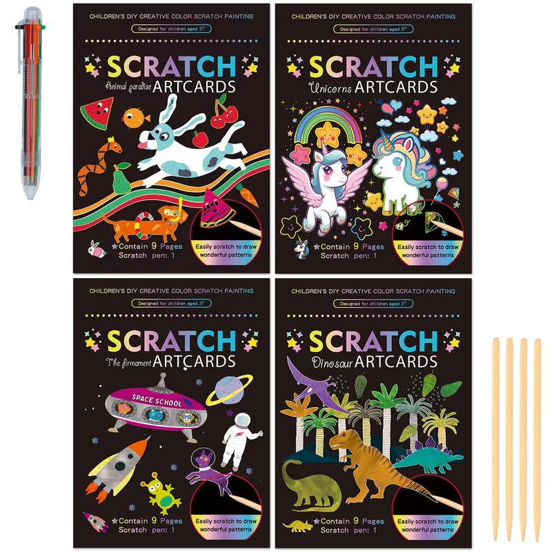 - Creative Scratch Art: With four captivating themes to choose from - Animals, Unicorns, space , and Dinosaurs - these cards offer endless opportunities for artistic expression