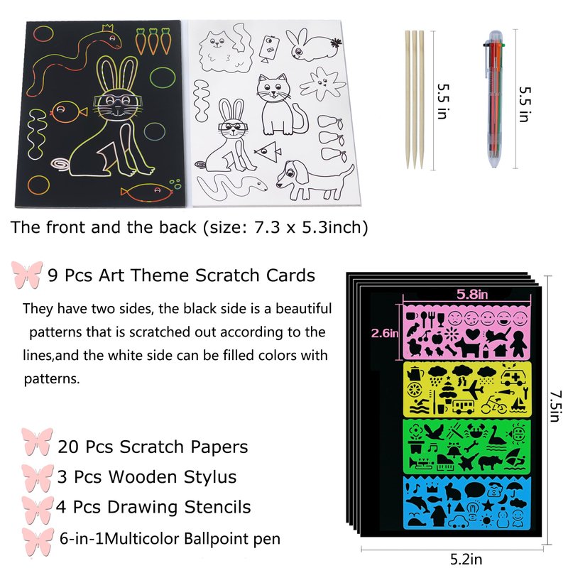 - Great Scratch Gift for Kids: This art craft supplies is an ideal gift for kids Birthday, party, Children's day, Mother's Day, Father's Day,Thanksgiving Day, Halloween, Easter, Christmas, New Year's Day, Activities and Outdoor Travel etc. Girls, boys and teens all love it,Fun for both you and the kids