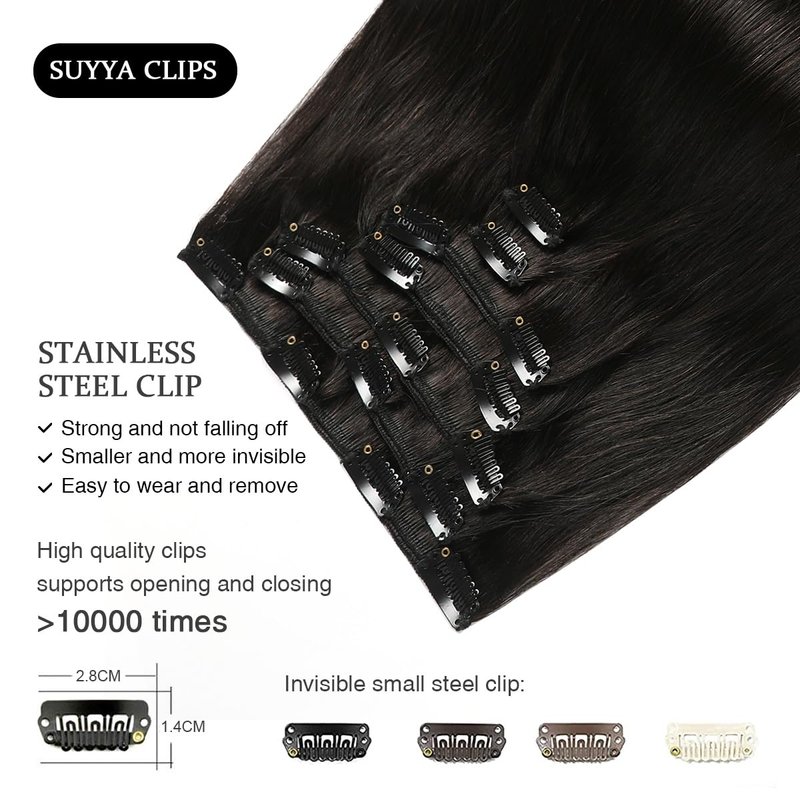 - 【Quick Wear and Long Lasting】Suyya clip in extensions have quality clips, you can easily apply and remove them by yourself .You will be able to quickly achieve the hairstyle you want in any situation.