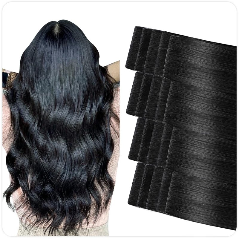SUYYA Invisible Tape in Hair Extensions Human Hair Jet Black Seamless Injected Hand-Tied Pro Quality Virgin Human Hair 20PCS 40G/Pack Straight Tape Ins(14 inch #1 Jet Black)