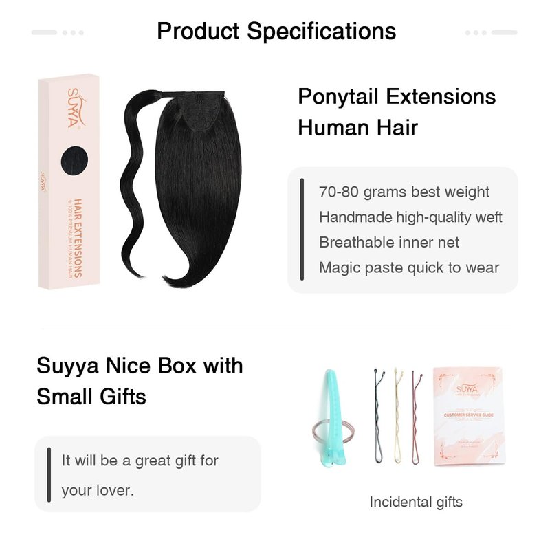 - 【As a preferred gift】 The package is beautiful and exquisite.You can also give this ponytail to your lover.Maybe, you will have a wonderful experience.Suyya hair makes you always confident and beautiful.