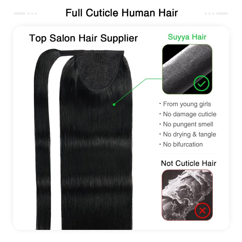Suyya Ponytail Extension Human Hair 80g #1 Jet Black Real Human Hair Ponytail Extension