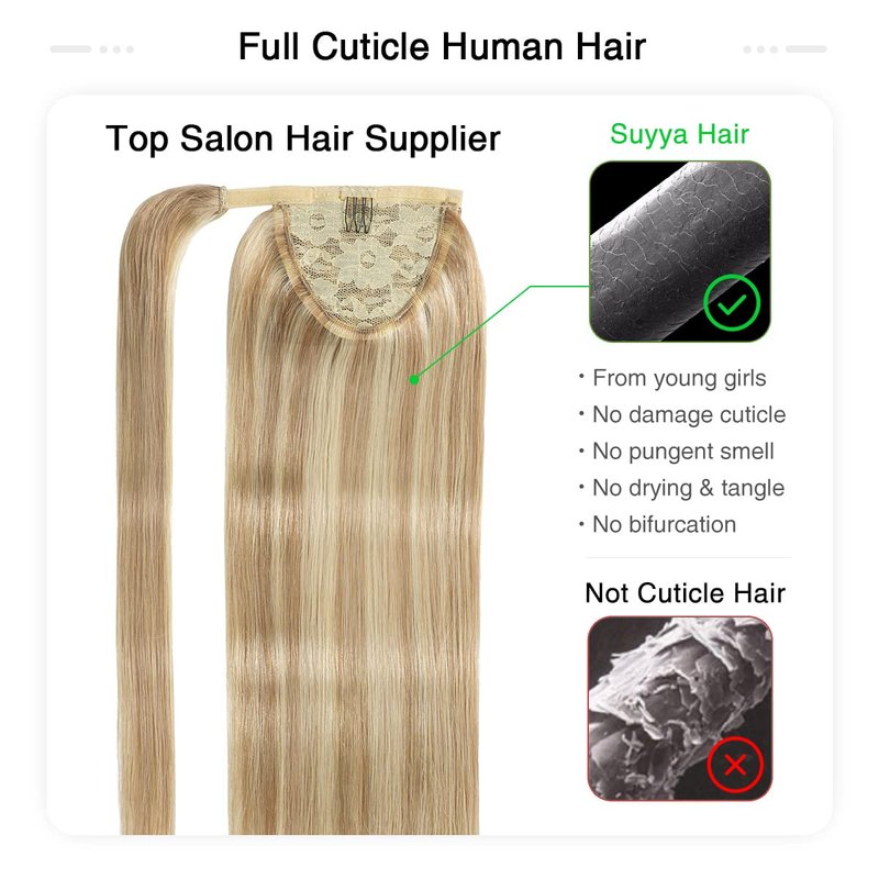 Suyya Ponytail Extension Human Hair 70g #P18/613 Ash Blonde/Bleach Blonde Real Human Hair Ponytail Extension