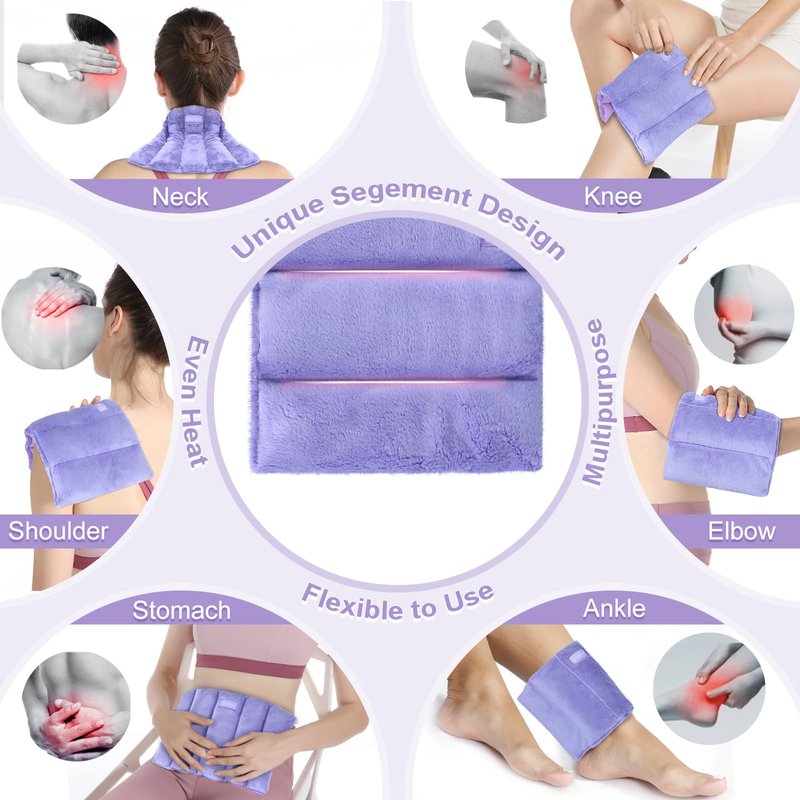 - Flexible and Even Warm Compress: The sectioned chamber design ensures the seed is evenly distributed inside the hot pack, delivers more even heat for instant pain relief and relaxation. And it's very flexible to mold to knee, neck, shoulder, back, hand, foot, ankle and tennis elbow makes it a versatile heat wrap for pain relief.