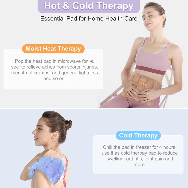 - Hot & Cold Therapy: Microwave this cordless heating pad safely for 90 secs to enjoy up to 20 mins moist heat therapy. And the linen side provides excellent soothing coldness to reduce swelling, inflammation and aches due to strains and sprains by chilling it in freezer for 4 hours.