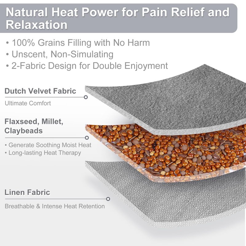 - Cozy Double-Side Fabric: Our microwavable heating pads for pain relief designed with two kinds of fabric is skin-friendly even for sensitive skin. One side made of Velvet Dutch is ultra-silky to the skin and durable, and the other side made of Linen is comfy and breathable with extra heat retention and delivers more intense heat.
