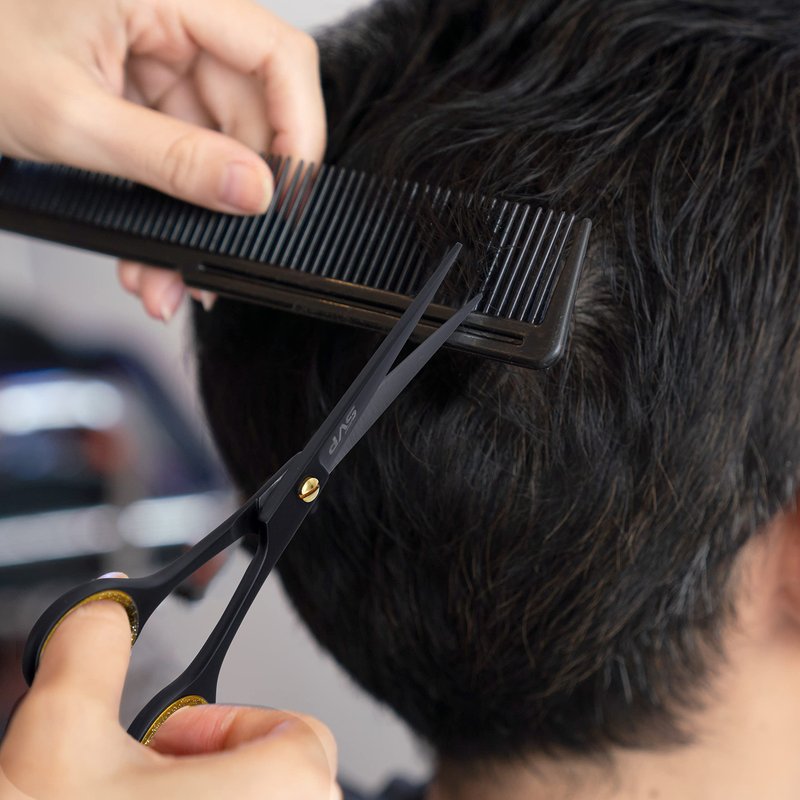 - Buy with confidence - Professional barber shears with effective performance that will assist you in getting the desired results. Coated in a stylish Matte black finish. A pair of professional hair scissors with a distinctive, easy-to-grip handle designed for use by professionals, barbers, and individuals that offer greater control and flexibility than clippers.