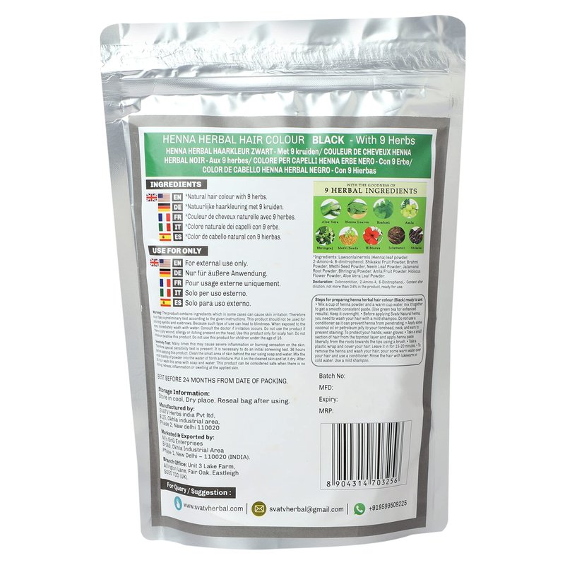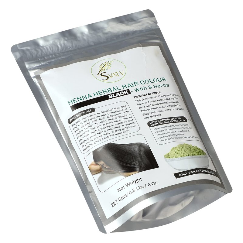 SVATV Black Henna Hair Color with Goodness of 9 Herbs | Black Henna Mehndi for Hair, Make Hair Soft & Shiner Natural Hair Color for Men & Women 227g,08oz Half Pound