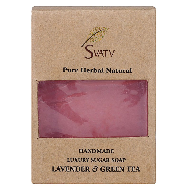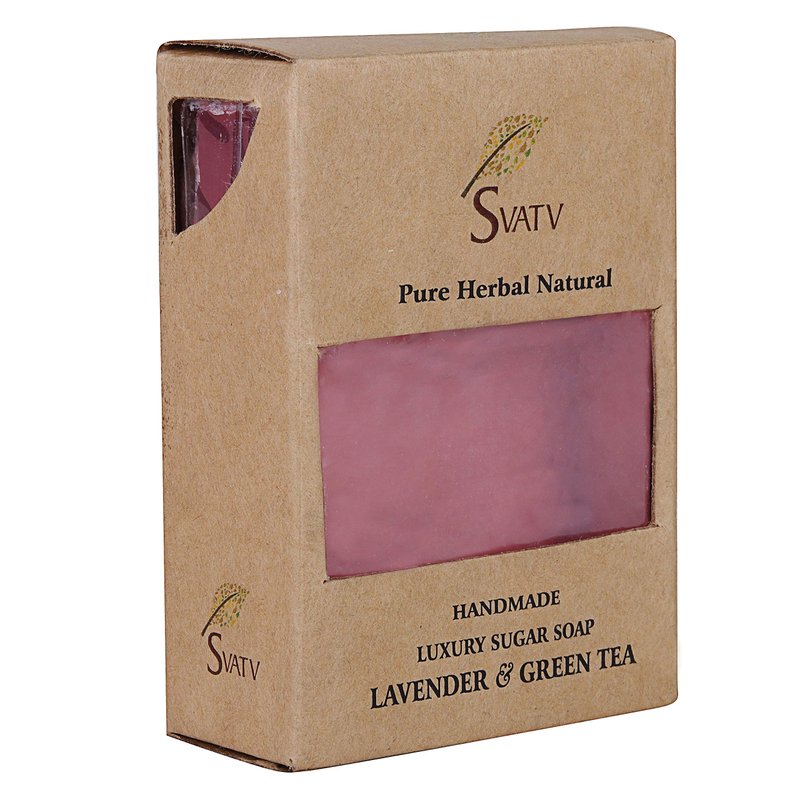 SVATV Handcrafted Soap with natural, soothing herbs of LAVENDER & GREEN TEA I For Men and Women | Kosher & GMP Certified Soap | Traditional Ayurvedic Herbal Soap for all skin type - 125g