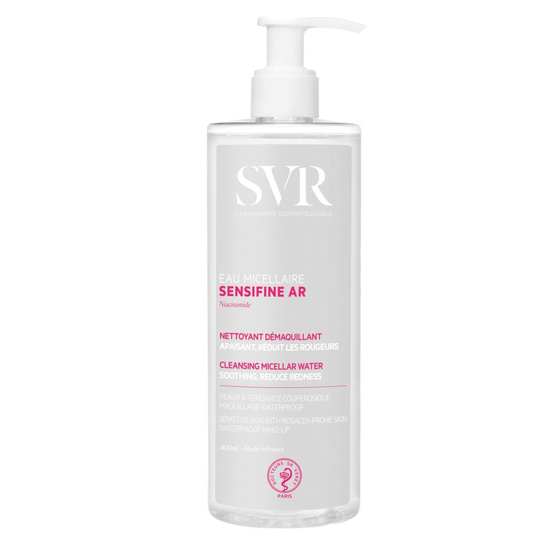 SVR Sensifine AR Micellar Water - Niacinamide. Soothing, Redness Relief Face Cleanser & Makeup Remover for Face, Eyes, Lips. Gentle, No-Rinse Cleanser for Sensitive, Reactive Skin, 13.5 fl.oz.